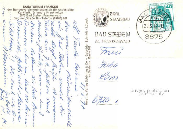 72724319 alte Postkarte Bad Steben Sanatorium Franken Terrasse Speisesaal postalisch gelaufen Erhaltung siehe scans [FriedD77] KatCode: 11110009475112