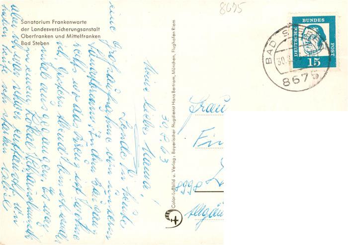 73941285 alte Postkarte Bad Steben Sanatorium Frankenwarte der LVA postalisch gelaufen Fliegeraufnahme Erhaltung siehe scans [FriedD77] KatCode: 11110009475112
