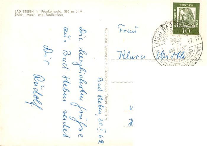 73914839 alte Postkarte Bad Steben Staatl Kurheim Trinkhalle Gesellschaftsraum Speisesaal postalisch gelaufen Erhaltung siehe scans [WerneD78] KatCode: 11110009475112