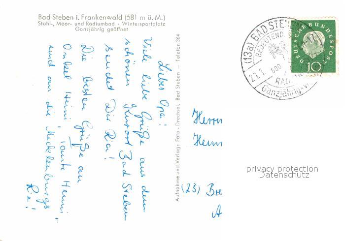 72790877 alte Postkarte Bad Steben Staatliches Kurheim Kurhaus Kurpark Rathaus Hemplahaus Frankenwaldschanze Winterpanorama postalisch gelaufen Erhaltung siehe scans [FriedD77] KatCode: 11110009475112