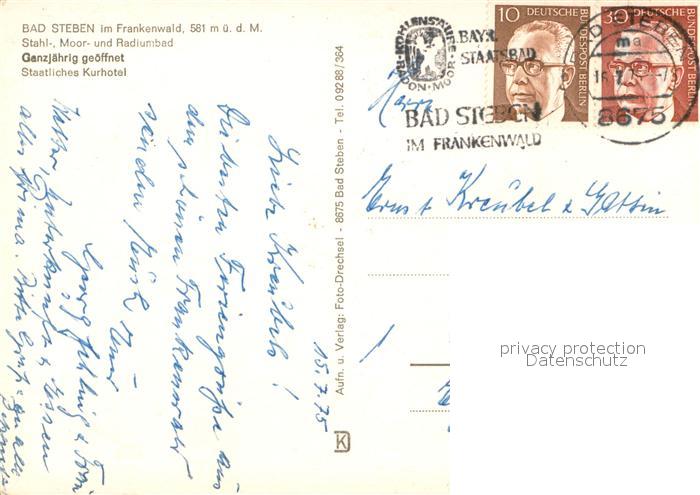 73720703 alte Postkarte Bad Steben Stahl- Moor- und Radiumbad Aussenansicht Kurhotel postalisch gelaufen Erhaltung siehe scans [LiesaD40] KatCode: 11110009475112