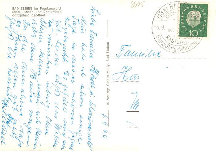 73940550 alte Postkarte Bad Steben Stahl- Moor und Radiumbad Original Fliegeraufnahme postalisch gelaufen Erhaltung siehe scans [FriedD77] KatCode: 11110009475112