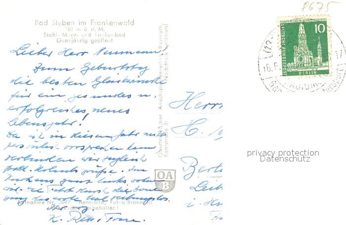 43352259 alte Postkarte Bad Steben Stahl und Moorbad Fliegeraufnahme postalisch gelaufen Erhaltung siehe scans [WerneD78] KatCode: 11110009475112