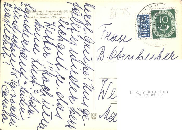 72059237 alte Postkarte Bad Steben Stahl und Moorbad postalisch gelaufen KatCode: 11110009475112