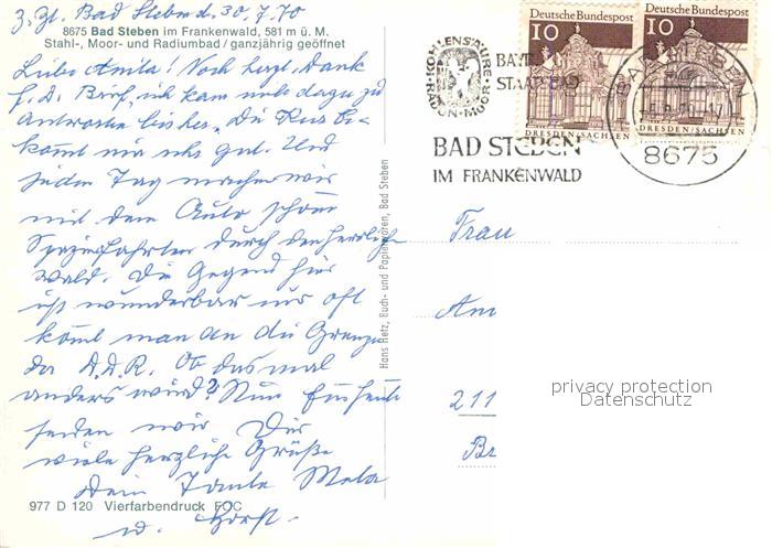 72743707 alte Postkarte Bad Steben Wandelhalle Frankenwarte Schwimmbad Langenautal postalisch gelaufen Erhaltung siehe scans [LiesaD40] KatCode: 11110009475112