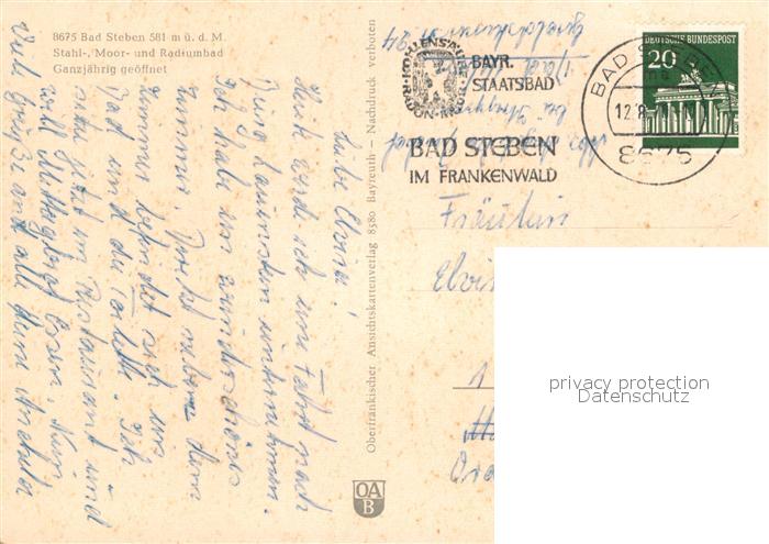 72989573 alte Postkarte Bad Steben Wandelhalle Konzertsaal Trinkhalle postalisch gelaufen Erhaltung siehe scans [WerneD78] KatCode: 11110009475112