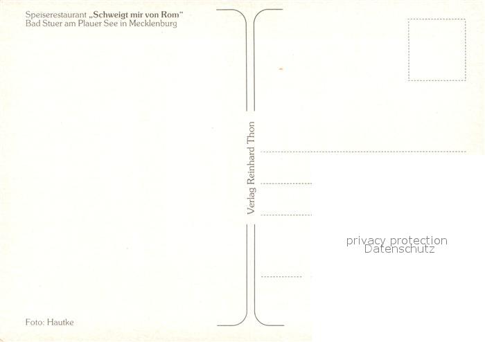 73653064 Bad Stuer Speiserestaurant Schweigt mir von Rom postalisch nicht gelaufen Erhaltung siehe scans [WerneD78] KatCode: 11110013056065