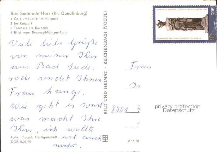 71983024 alte Postkarte Bad Suderode Calciumquelle im Kurpark Thomas Muentzer Turm postalisch gelaufen Erhaltung siehe scans KatCode: 11110015085035