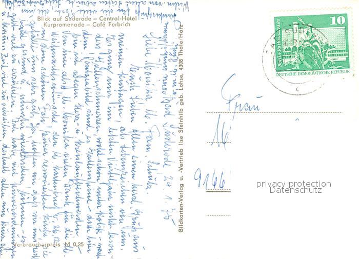 73035717 alte Postkarte Bad Suderode Central Hotel Kurpromenade Cafe Forbrich postalisch gelaufen Erhaltung siehe scans [KathaD81] KatCode: 11110015085035