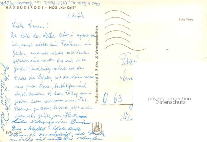 73209771 alte Postkarte Bad Suderode HOG Kur-Cafe postalisch gelaufen Erhaltung siehe scans [NatalD47] KatCode: 11110015085035