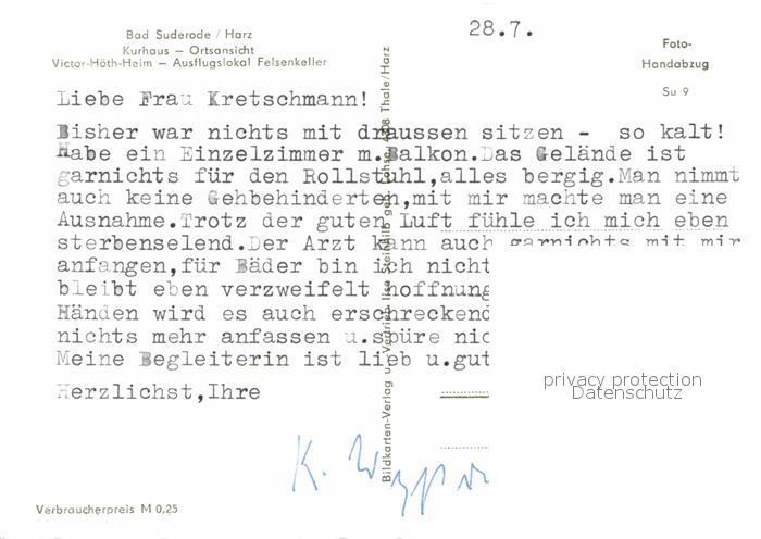 72712063 Bad Suderode Kurhaus Ortsansicht Victor Hoeth Heim Ausflugslokal Felsenkeller Handabzug postalisch nicht gelaufen Erhaltung siehe scans [FriedD77] KatCode: 11110015085035