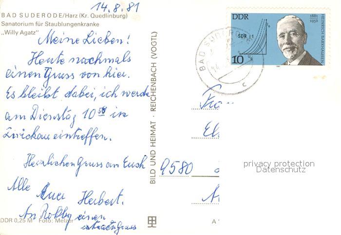 73163160 alte Postkarte Bad Suderode Sanatorium fuer Staublugenkranke Fliegeraufnahme postalisch gelaufen Erhaltung siehe scans [WerneD78] KatCode: 11110015085035