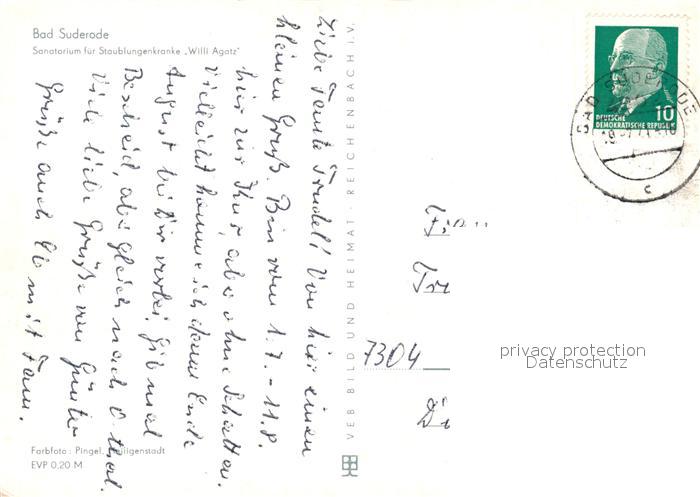 73104971 alte Postkarte Bad Suderode Sanatorium fuer Staublungenkranke Willi Agatz postalisch gelaufen Erhaltung siehe scans [WerneD78] KatCode: 11110015085035