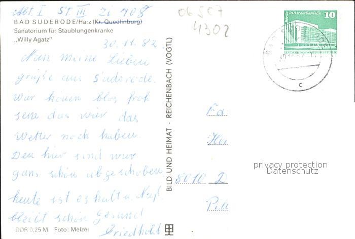 72476563 alte Postkarte Bad Suderode Sanatorium Willy Agatz postalisch gelaufen Erhaltung siehe scans KatCode: 11110015085035