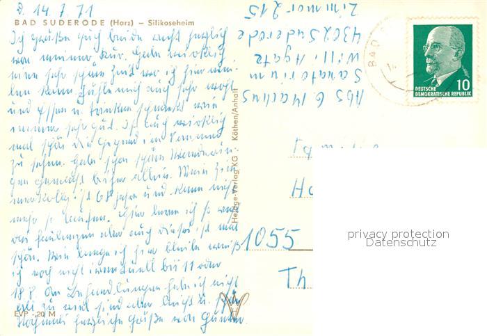 73138605 alte Postkarte Bad Suderode Silikoseheim postalisch gelaufen Erhaltung siehe scans [NatalD47] KatCode: 11110015085035