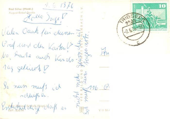 73864455 alte Postkarte Bad Suelze August-Bebel-Strasse Kirchturm postalisch gelaufen Erhaltung siehe scans [FriedD77] KatCode: 11110013057006