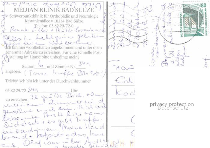 72654421 alte Postkarte Bad Suelze Median Klinik Aufenthaltsraum Speisesaal Schwanenteich postalisch gelaufen Erhaltung siehe scans [WerneD78] KatCode: 11110013057006