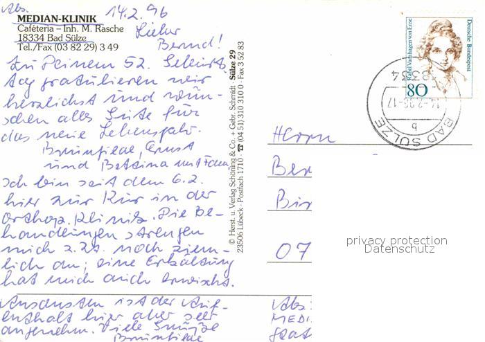 72784659 alte Postkarte Bad Suelze Median-Klinik postalisch gelaufen Erhaltung siehe scans [LiesaD40] KatCode: 11110013057006