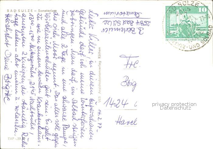 71989758 alte Postkarte Bad Suelze Sanatorium postalisch gelaufen Erhaltung siehe scans KatCode: 11110013057006