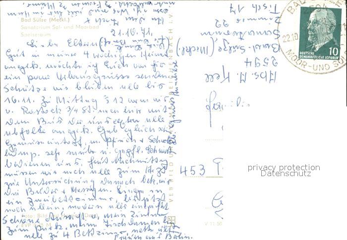 72079297 alte Postkarte Bad Suelze Sanatorium Sol Moorbad Speiseraum postalisch gelaufen Erhaltung siehe scans KatCode: 11110013057006