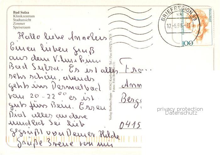 73782558 alte Postkarte Bad Sulza Klinikzentrum – Stadtansicht – Zimmer – Speiseraum postalisch gelaufen Erhaltung siehe scans [LiesaD40] KatCode: 11110016071004