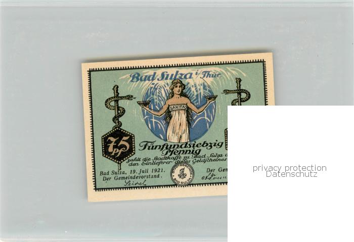 73770384 Bad Sulza Notgeldschein Fuenfundsiebzig Pfennig postalisch nicht gelaufen Notgeldschein (keine Postkarte) Erhaltung siehe scans [LiesaD40] KatCode: 11110016071004