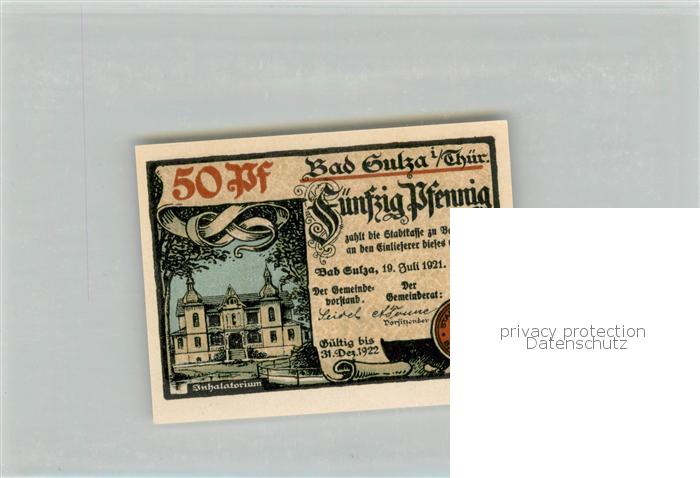 73770385 Bad Sulza Notgeldschein Fuenfzig Pfennig postalisch nicht gelaufen Notgeldschein (keine Postkarte) Erhaltung siehe scans [LiesaD40] KatCode: 11110016071004