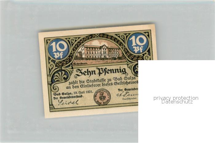 73770387 Bad Sulza Notgeldschein Zehn Pfennig postalisch nicht gelaufen Notgeldschein (keine Postkarte) Erhaltung siehe scans [LiesaD40] KatCode: 11110016071004