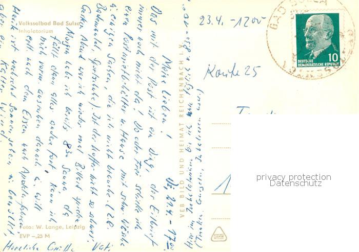 73751063 alte Postkarte Bad Sulza Volkssolbad Inhalatorium postalisch gelaufen Erhaltung siehe scans [WerneD78] KatCode: 11110016071004