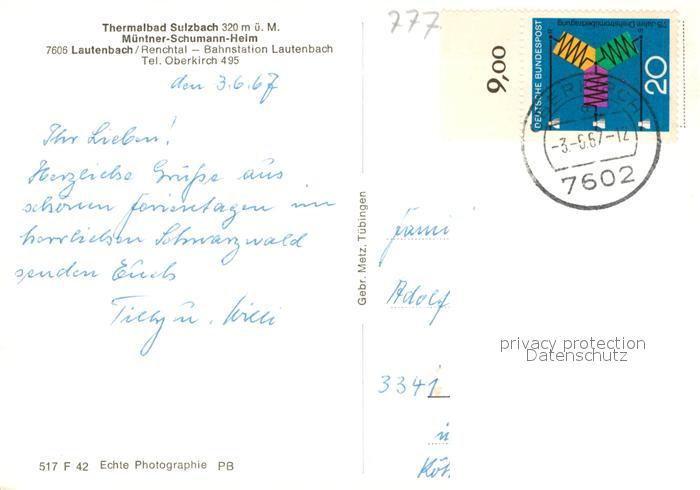 73335571 alte Postkarte Bad Sulzbach Muentner Schumann Heim Renchtal postalisch gelaufen Erhaltung siehe scans [FriedD77] KatCode: 11110008317067