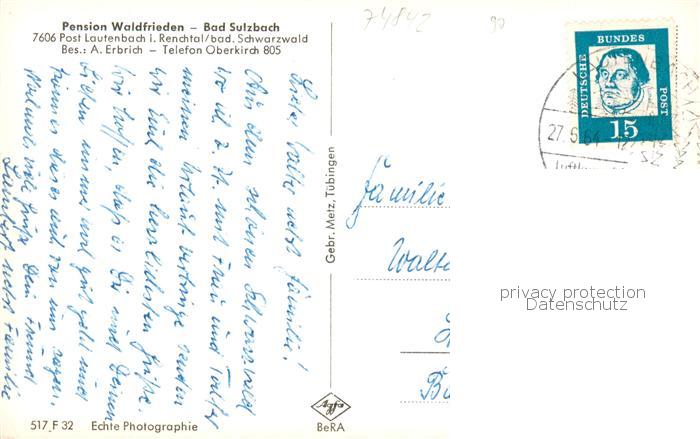 73797310 alte Postkarte Bad Sulzbach Pension Waldfrieden Fliegeraufnahme postalisch gelaufen Erhaltung siehe scans [WerneD78] KatCode: 11110008317067