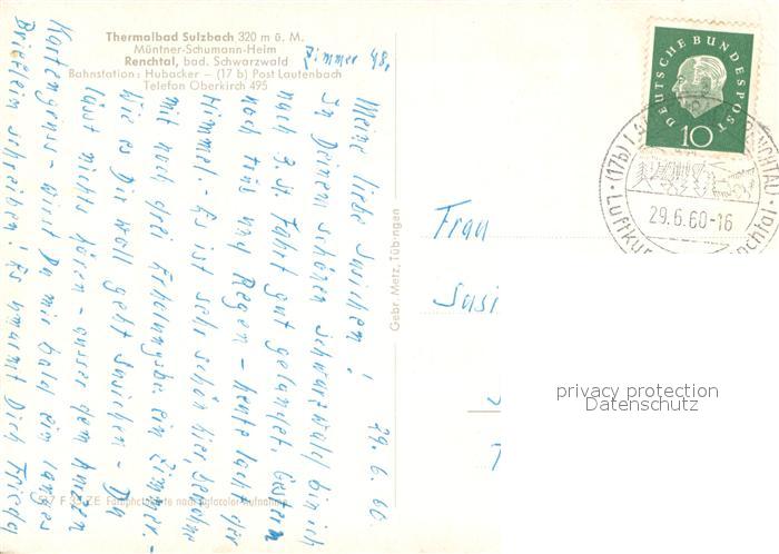 73644346 alte Postkarte Bad Sulzbach Thermalbad Sulzbach Muentner Schumann Heim im Renchtal Schwarzwald postalisch gelaufen Erhaltung siehe scans [FriedD77] KatCode: 11110008317067