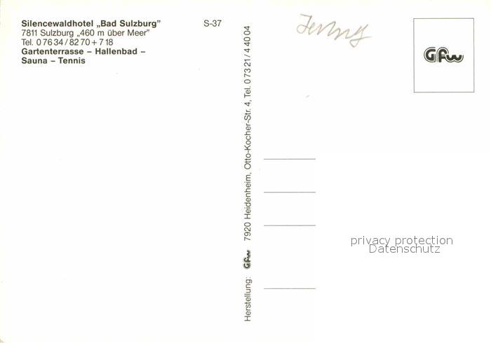 72730700 Bad Sulzburg Silencewaldhotel Bad Sulzburg postalisch nicht gelaufen Erhaltung siehe scans [AndreD76] KatCode: 11110008315111
