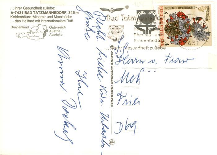 73923098 alte Postkarte Bad Tatzmannsdorf Burgenland AT Kurzentrum Fliegeraufnahme postalisch gelaufen Erhaltung siehe scans [FriedD77] KatCode: 11390113010901