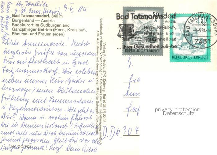 73753793 alte Postkarte Bad Tatzmannsdorf Burgenland Fliegeraufnahme Kurhaus postalisch gelaufen Erhaltung siehe scans [WerneD78] KatCode: 11390113010901