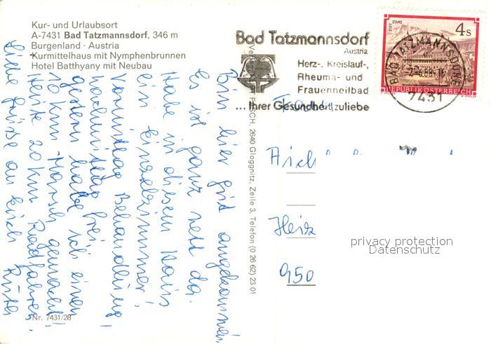73164875 alte Postkarte Bad Tatzmannsdorf Burgenland Hotel Batthyany postalisch gelaufen Erhaltung siehe scans [LiesaD40] KatCode: 11390113010901