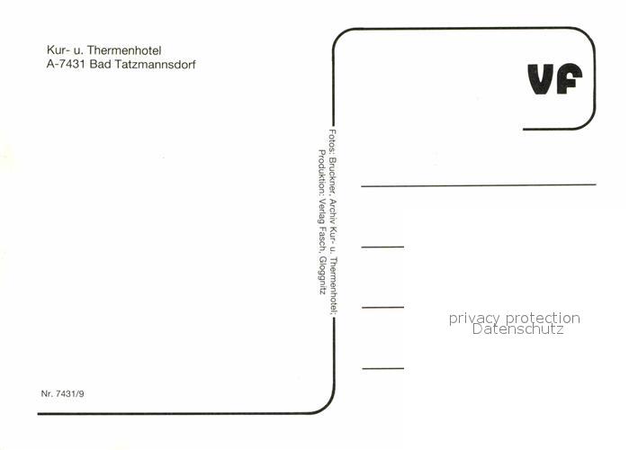72845132 Bad Tatzmannsdorf Burgenland Kur- und Thermenhotel postalisch nicht gelaufen Erhaltung siehe scans [PaolaD17] KatCode: 11390113010901