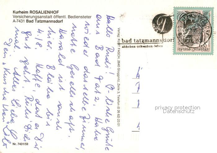 73281782 alte Postkarte Bad Tatzmannsdorf Burgenland Kurheim Rosalienhof postalisch gelaufen Erhaltung siehe scans [WerneD78] KatCode: 11390113010901
