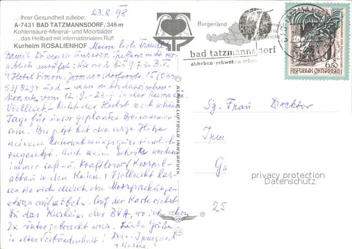 72468225 alte Postkarte Bad Tatzmannsdorf Burgenland Kurheim Rosalienhof postalisch gelaufen Erhaltung siehe scans KatCode: 11390113010901
