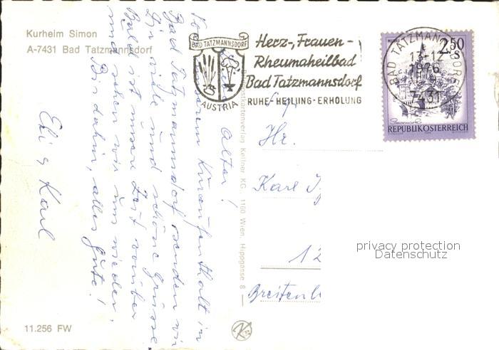 72375698 alte Postkarte Bad Tatzmannsdorf Burgenland Kurheim Simon postalisch gelaufen Erhaltung siehe scans KatCode: 11390113010901