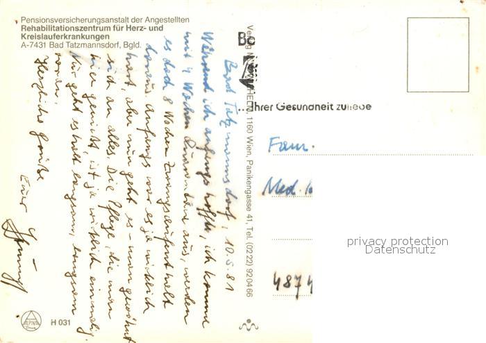 73049381 alte Postkarte Bad Tatzmannsdorf Burgenland REHA Zentrum postalisch gelaufen Erhaltung siehe scans [KathaD81] KatCode: 11390113010901