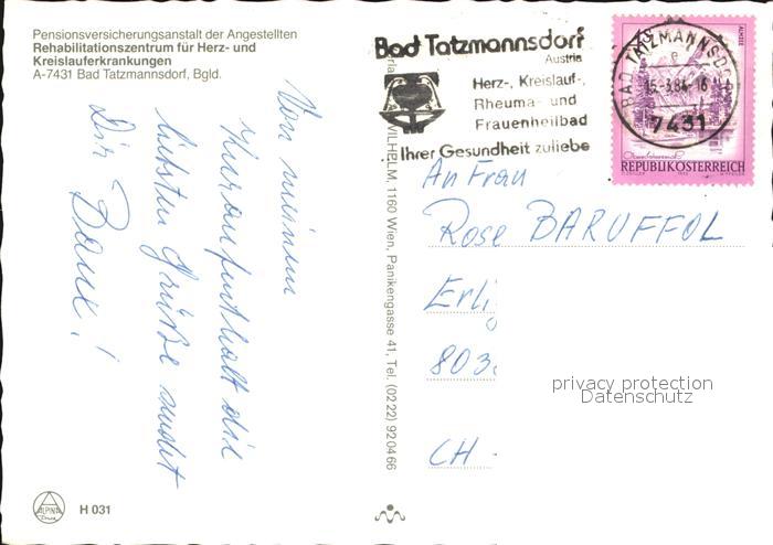 72531404 alte Postkarte Bad Tatzmannsdorf Burgenland Rehabilisationszentrum fuer Herz und Kreislauferkrankungen postalisch gelaufen Erhaltung siehe scans [AndreD76 kt113box] KatCode: 11390113010901