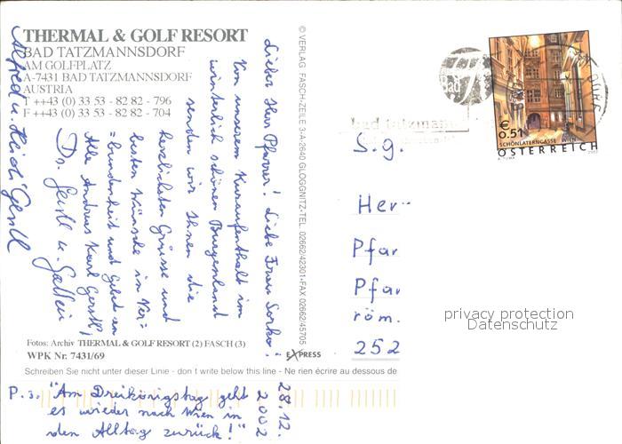 71989134 alte Postkarte Bad Tatzmannsdorf Burgenland Thermal und Golf Resort postalisch gelaufen Erhaltung siehe scans KatCode: 11390113010901
