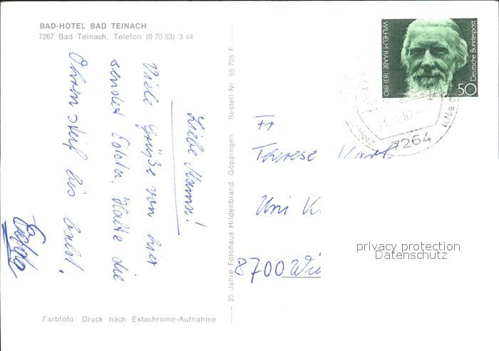 72228232 alte Postkarte Bad Teinach-Zavelstein Bad Hotel postalisch gelaufen Erhaltung siehe scans KatCode: 11110008235084