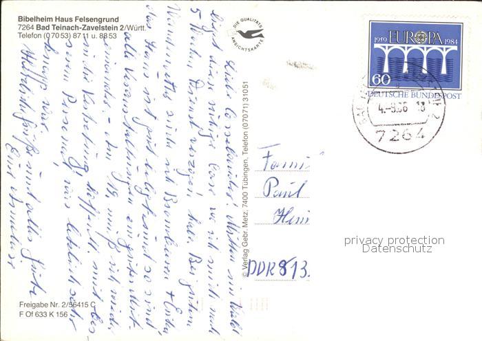 72542699 alte Postkarte Bad Teinach-Zavelstein Bibelheim Haus Felsengrund postalisch gelaufen Erhaltung siehe scans [KathaD75 kv015box] KatCode: 11110008235084