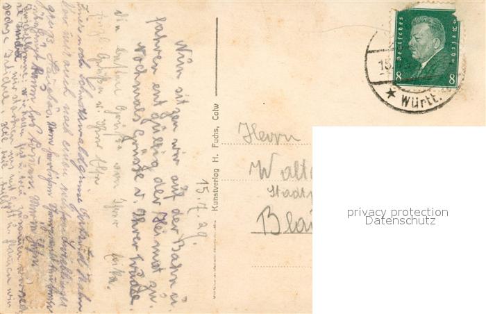 43017578 alte Postkarte Bad Teinach-Zavelstein Blick vom Waldrand aus postalisch gelaufen Erhaltung siehe scans [FriedD77] KatCode: 11110008235084