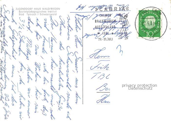 74109975 alte Postkarte Bad Teinach-Zavelstein BW Jugenddorf Haus Waldfrieden postalisch gelaufen Erhaltung siehe scans [WerneD78] KatCode: 11110008235084