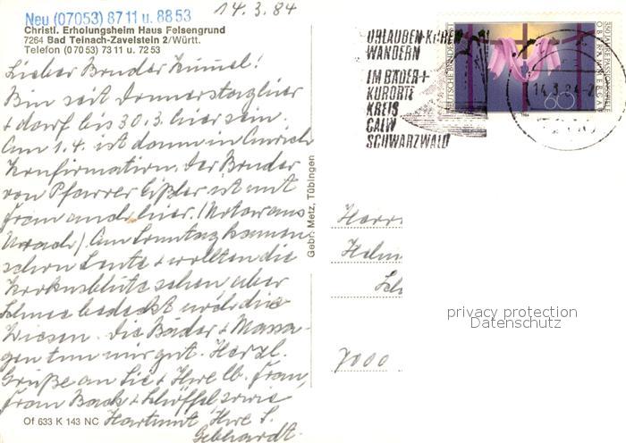 73653060 alte Postkarte Bad Teinach-Zavelstein Christl Erholungsheim Haus Felsengrund postalisch gelaufen Erhaltung siehe scans [WerneD78] KatCode: 11110008235084