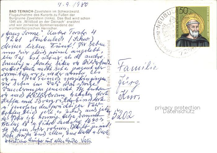 72481785 alte Postkarte Bad Teinach-Zavelstein Flugaufnahme postalisch gelaufen Erhaltung siehe scans KatCode: 11110008235084