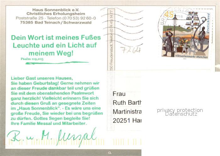 73745350 alte Postkarte Bad Teinach-Zavelstein Haus Sonnenblick Christl Erholungsheim Panorama Gastraeume Park Veranstaltungssaal postalisch gelaufen Erhaltung siehe scans [WerneD78] KatCode: 11110008235084